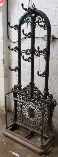 Caolbrookdale or similar cast iron hallstand with registered design kite mark to back, W81 x D27 x H183cm