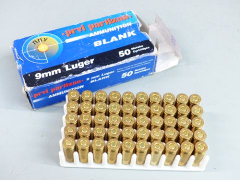 Fifty Prvi Partizan 9mm Luger blank rifle cartridges, in original box