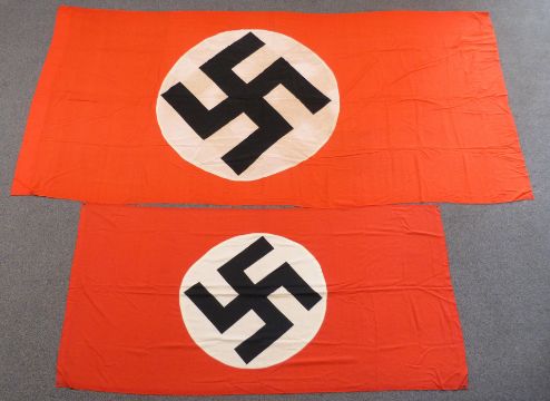 A large Nazi flag, 145 x 300cm, together with a smaller example 96 x 200cm