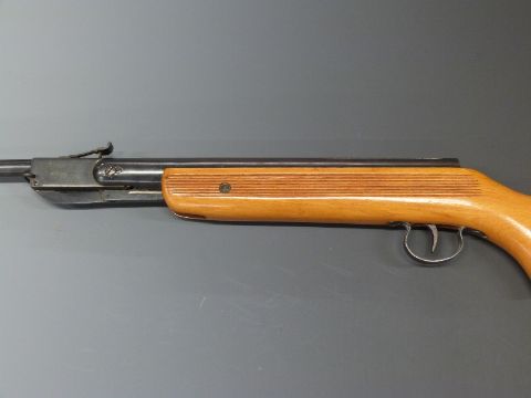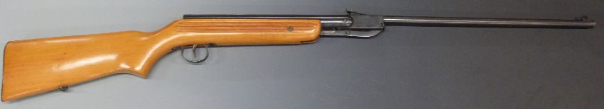 Relum Telly .22 air rifle with semi-pistol grip, raised cheek piece, sling suspension mounts and name plaque to stock, serial number 35484.