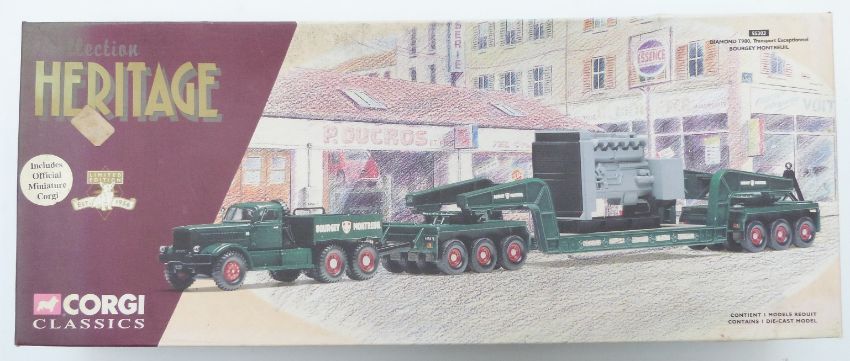 Three Corgi 1:50 scale limited edition diecast model lorries Maguires of Cheltenham Scania Bulk Tipper CC12803, Heritage Collection Bourgey Montreuil Diamond T980 Transport Exceptionnel 55303 and US Road Transport Diamond T980 & 24 Wheel Girder Trailer With Generator Load 5301, all in original boxes.