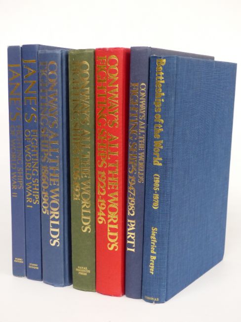 Seven Conway's and Jane's ship books including Fighting Ships of World War I and II