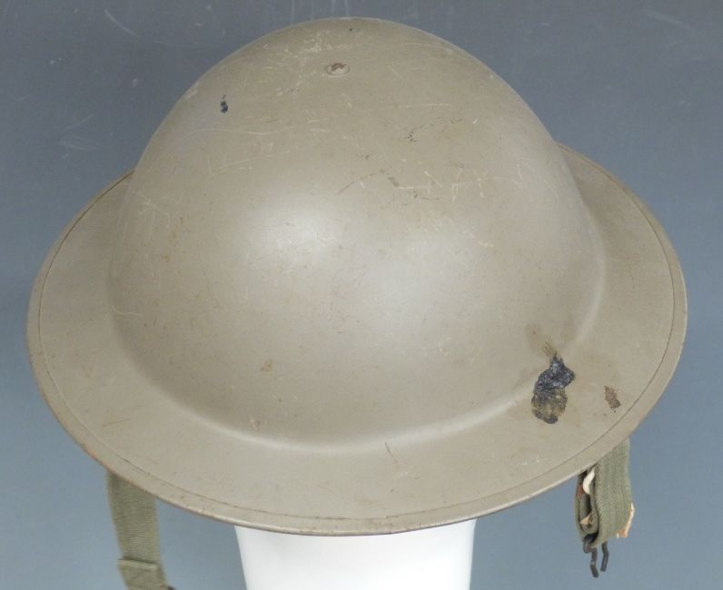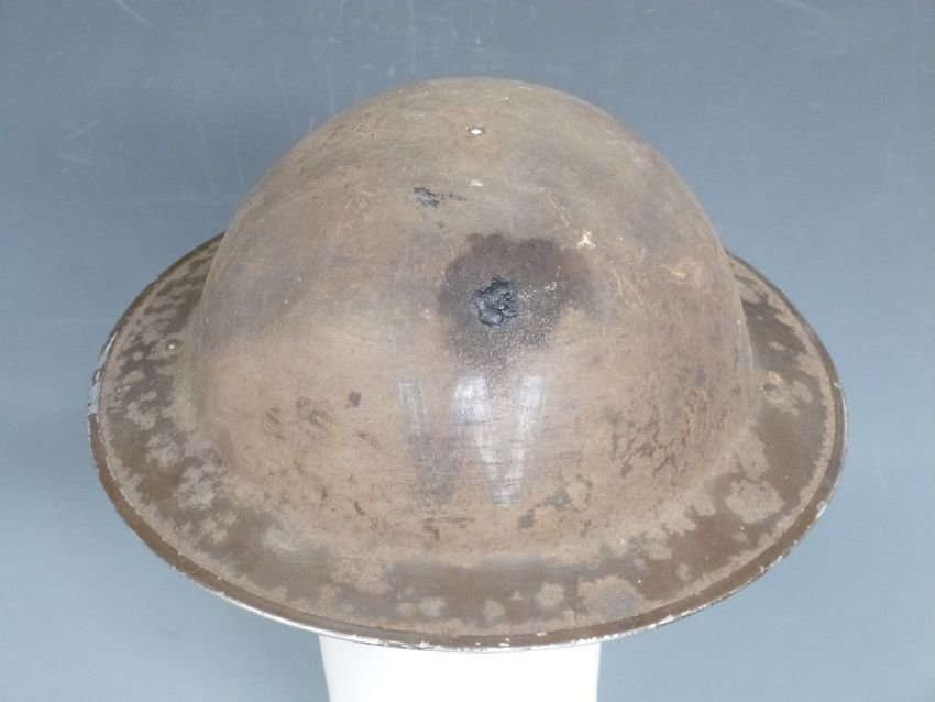 Two Brodie steel helmets, one with W (Warden) to front together with a more modern example complete with liner and net