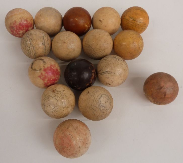 Sixteen late 19thC ivory snooker / billiard balls, diameter 51.5mm, weight 2.039kg