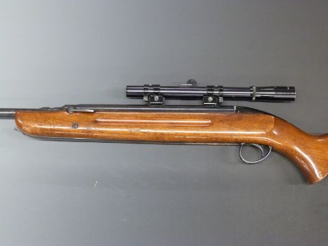 BSA Airsporter .22 air rifle with semi-pistol grip and Webley 4x15 scope, serial number GD34910.