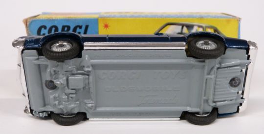 Corgi Toys diecast model Oldsmobile Toronado with metalic blue body and cream interior 264, in original box.