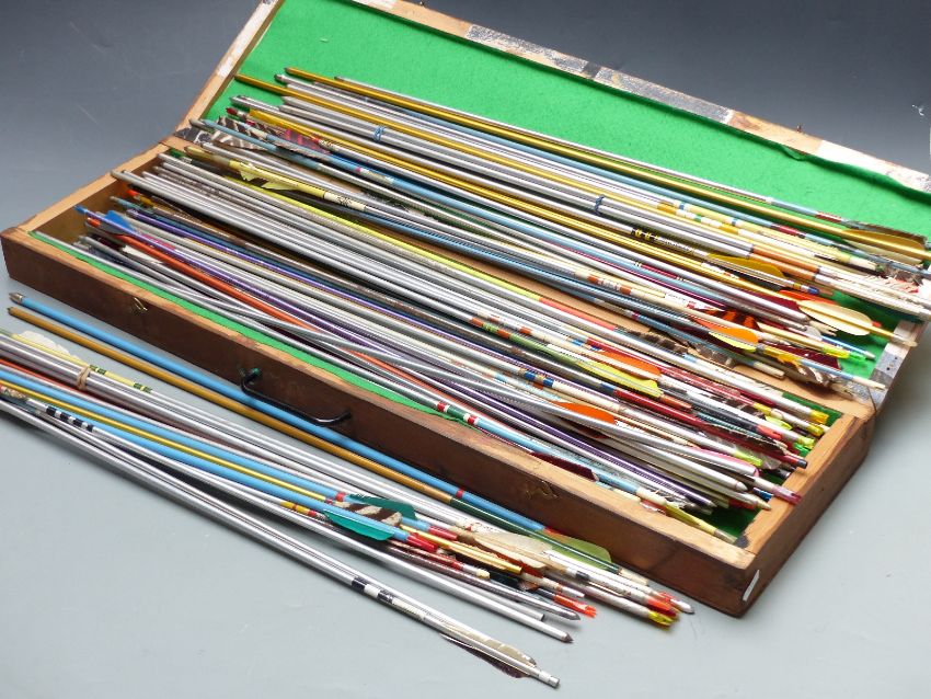 A large collection of metal archery arrows, various manufacturers including Easton, Practistreak, Apollo, Bjorn Bengtson etc, approximately 250 plus