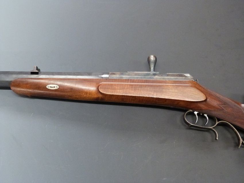 Unnamed .600 calibre bolt action rifle with chequered grip, set trigger, scrolling trigger guard, raised cheek piece to the stock, sling suspension mounts and 32 inch octagonal barrel, overall length 130.5cm, length of pull 33cm, serial number 6965