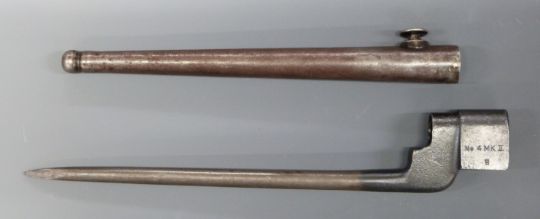 British No.4 Mk. II socket bayonet with 20cm blade and metal scabbard.