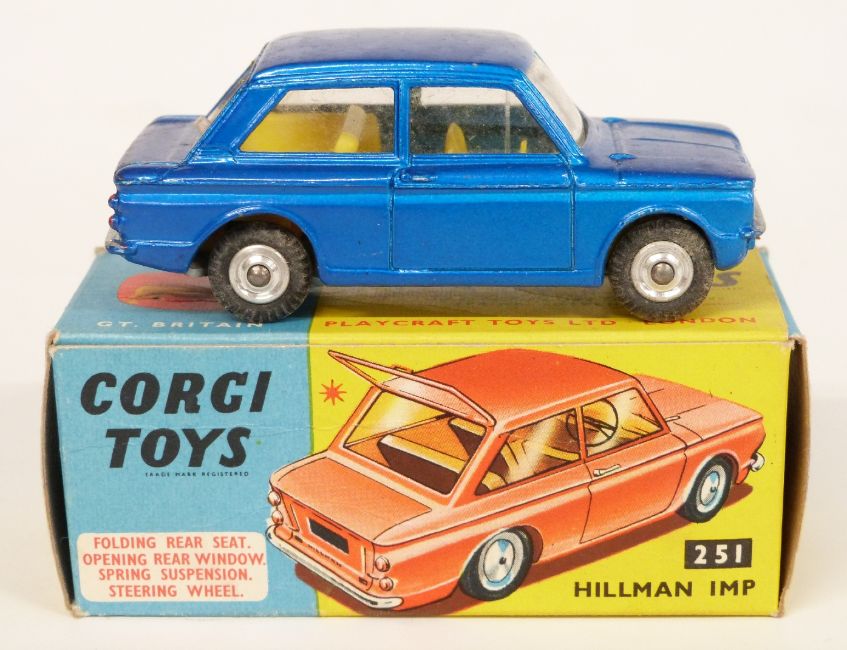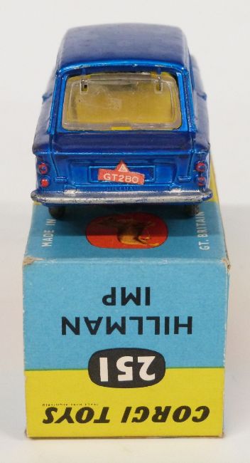 Corgi Toys diecast model Hillman Imp with blue body and lemon interior 251, in original box.