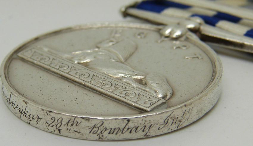 British Army Egypt Medal with clasp for Suakin 1885, named to Pte R Pendneykur, 28th Bombay Infantry