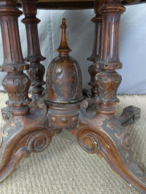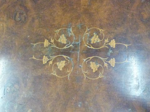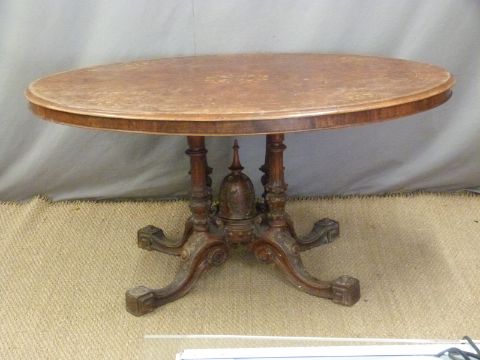 Victorian inlaid Walnut breakfast table with carved base. W160 x D116 x H70cm