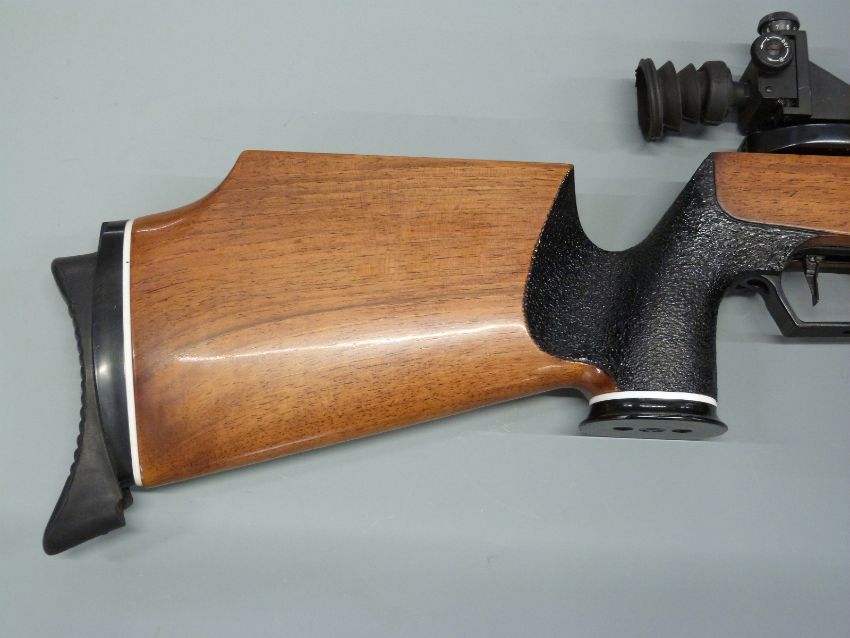 Feinwerkbau 300 S .177 competition target air rifle with semi-pistol grip, raised cheek piece to the stock, adjustable trigger and butt plate and match sights, serial number 243581, in hard carry case with original instructions.