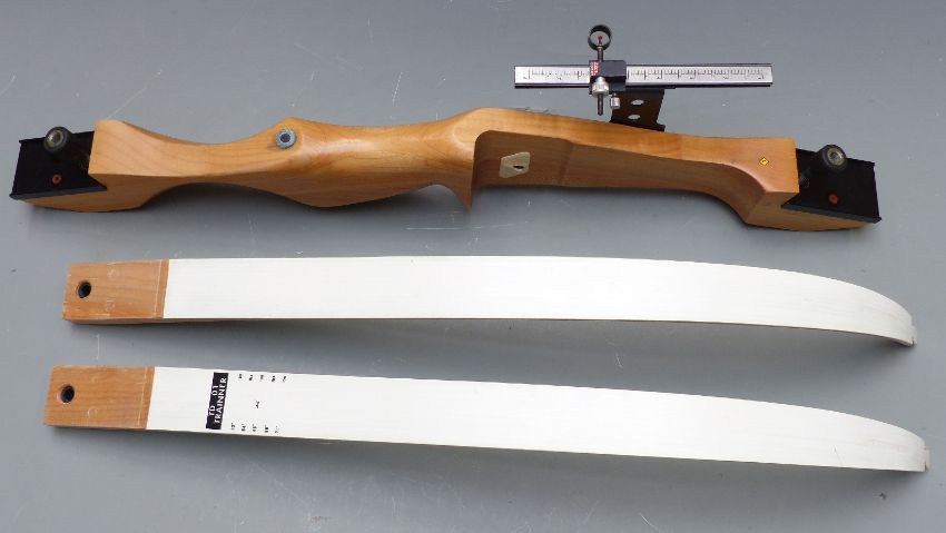 TD 01 trainer archery bow, two sets of arrows and accessories in fitted wooden box