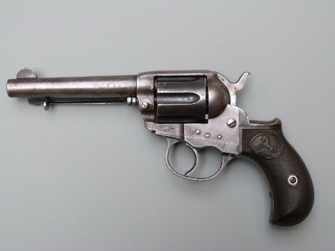 Colt model 1877 Thunderer .41 double action six shot revolver with Colt prancing horse emblem to grips and steel frame, 4.5 inch barrel stamped 'Colt. D. A. 41.' overall length 25cm, serial number 162895.