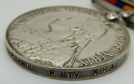 British Army Queens South African Medal with clasps for Relief of Kimberley, Paardeberg, Johannesburg, Dimond Hill and Wittebergen, named to 72464 Gnr J Marshall, R Battery Royal Horse Artillery