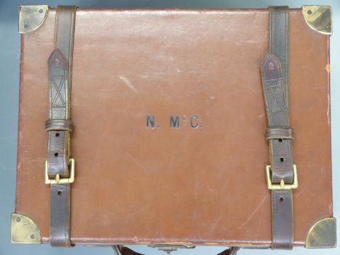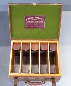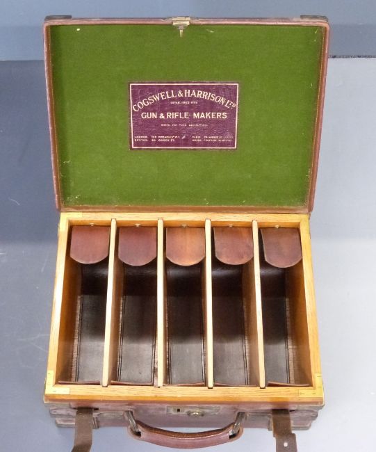 Cogswell & Harrison Ltd leather and brass bound oak shotgun cartridge case with original 'Gogswell & Harrison Ltd Gun & Rifle Makers', 39x30x18cm