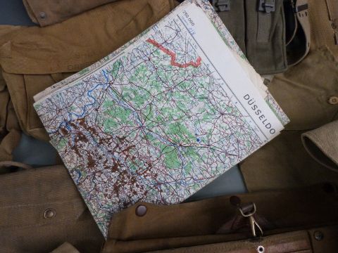 A collection of mainly WWII canvas bags, pouches, first aid bags and map cases
