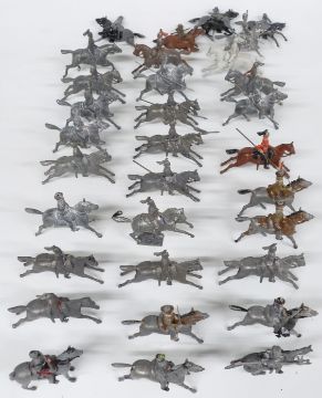 A large collection of Britains and similar lead and diecast model cavalry soldiers and horses.