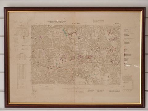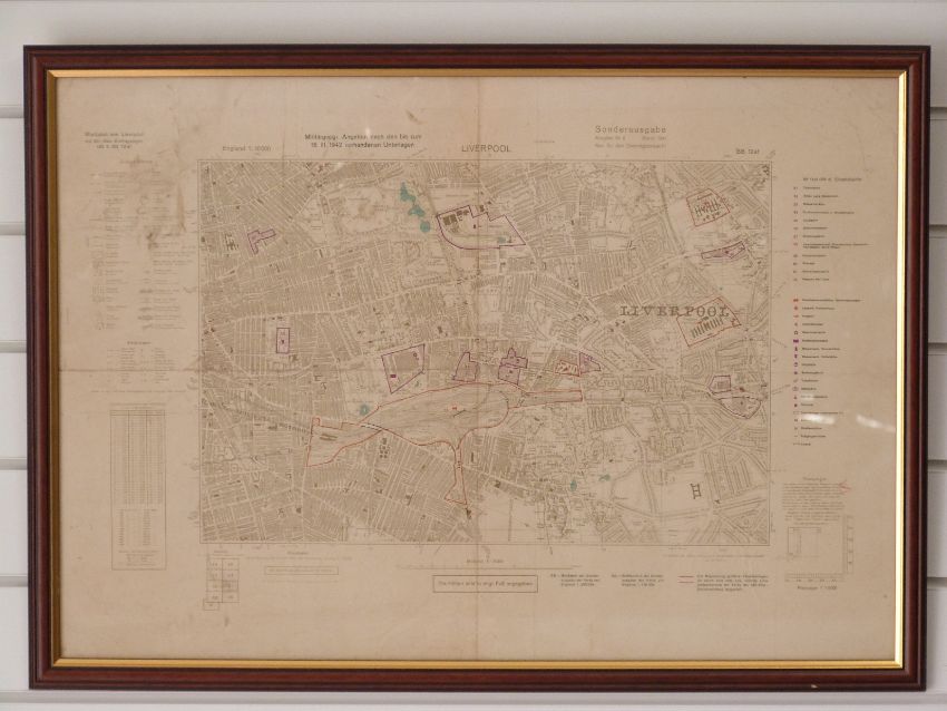 WWII Luftwaffe / German Air Force framed map of Liverpool, 77 x 55cm