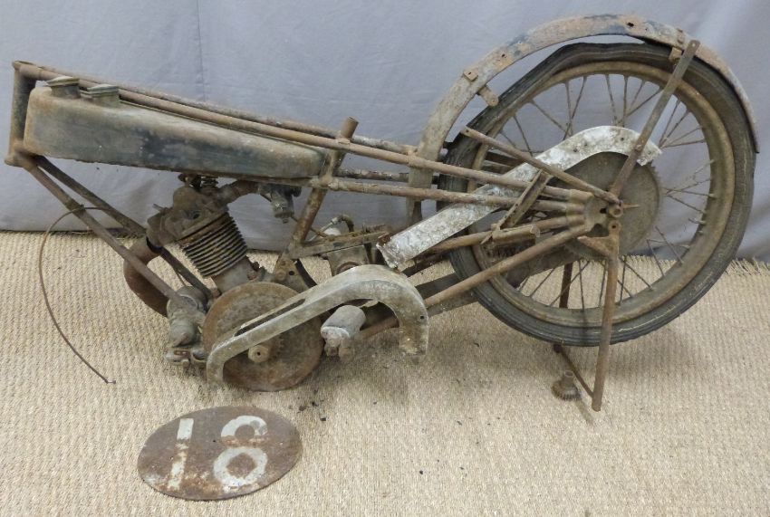 1927 Cotton 350cc OHV works racing motorcycle DF 2694, recently discovered in a local house clearance. With four boxes of parts including number plates, racing numbers, gearbox, carburettor etc. Engine number matches with registration records held at Gloucester but frame number as yet not found on the bike. It was first registered to Cotton themselves, possibly a works TT or similar motorbike. The last recorded keeper (as shown in records held by Gloucester records office) is Mr H.L.Martyn of Ewlyn Road Cheltenham, the very address the motorbike was discovered at.