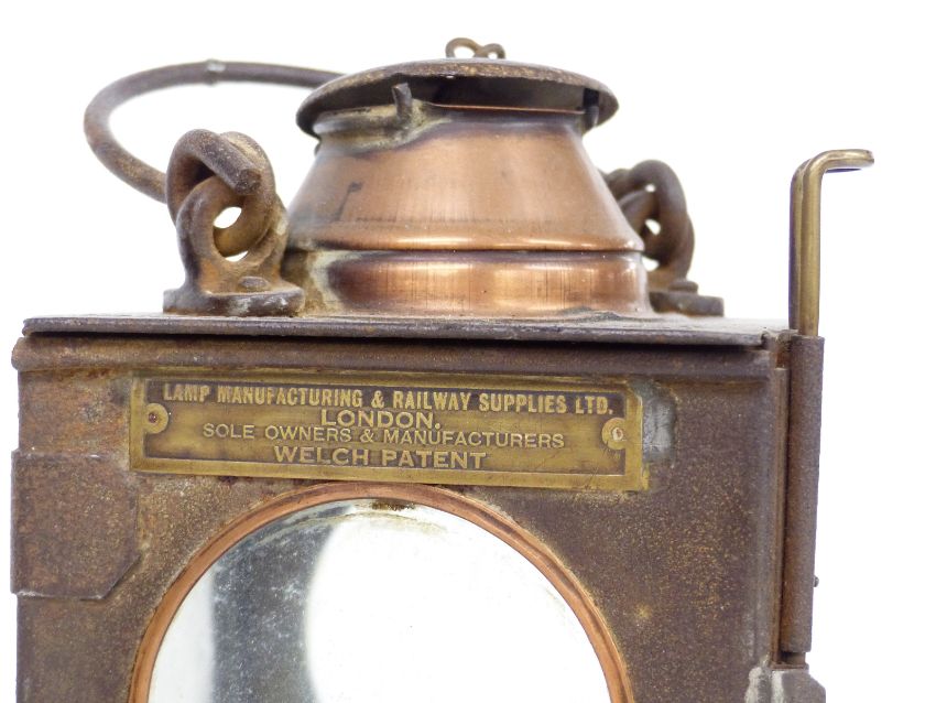 LNER railway signal oil lamp marked LNER Rd No 711205 Welch patent and with brass plaque for Lamp Manufacturing & Railway Supplies Ltd, height 29.5cm