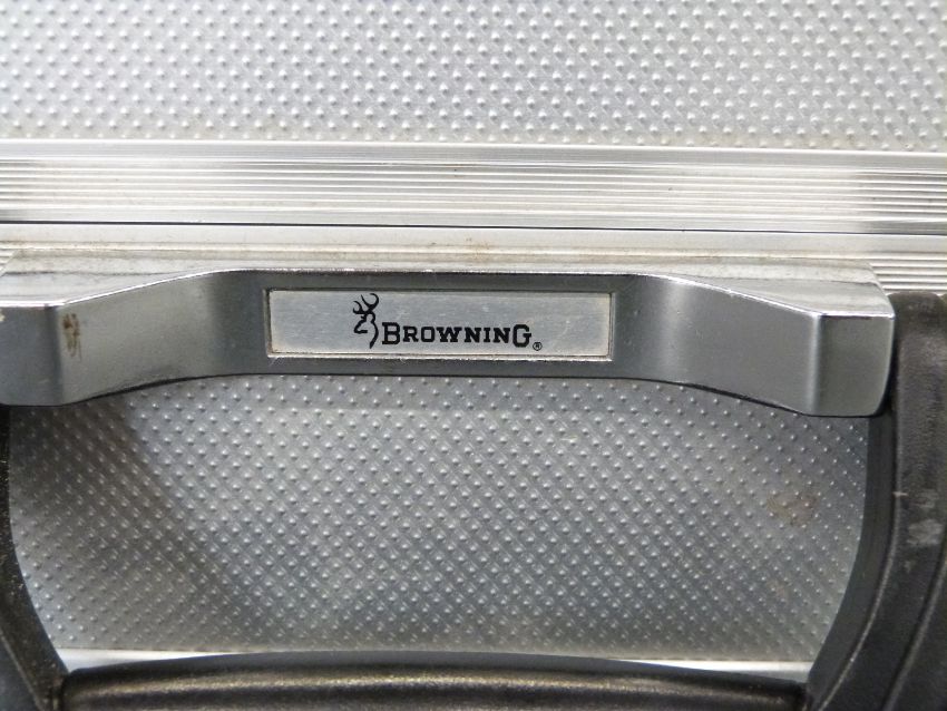 Browning metal fitted wooden shotgun or rifle carry case with fitted interior and coded locks, 97 x 25 x 12.5cm.
