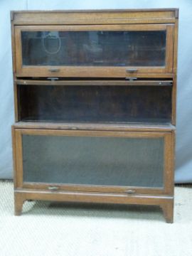 An oak Globe Wernicke style three tier glazed bookcase, W91 x D29 x H116cm