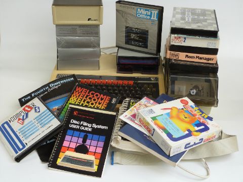 Acorn BBC microcomputer with disc drive and various games / programmes, some in original boxes
