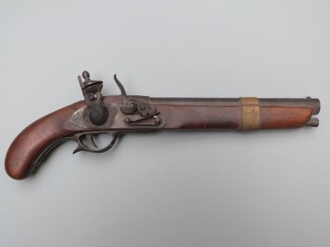 Flintlock hammer action style pistol with 9.5 inch barrel, overall length 40cm