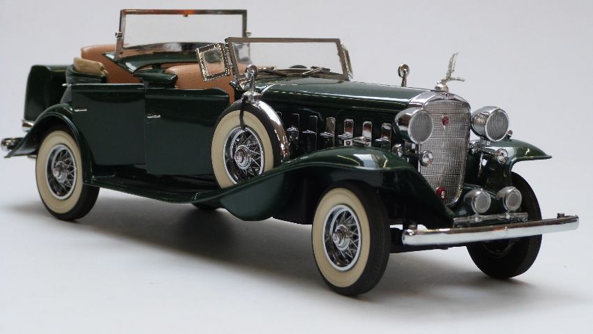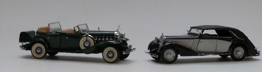 Two Danbury/ Franklin Mint 1:24 scale diecast model vehicles The 1932 Cadillac V-16 Sport Phaeton and The 1939 Maybach Zeppelin, both in original boxes/ packaging.