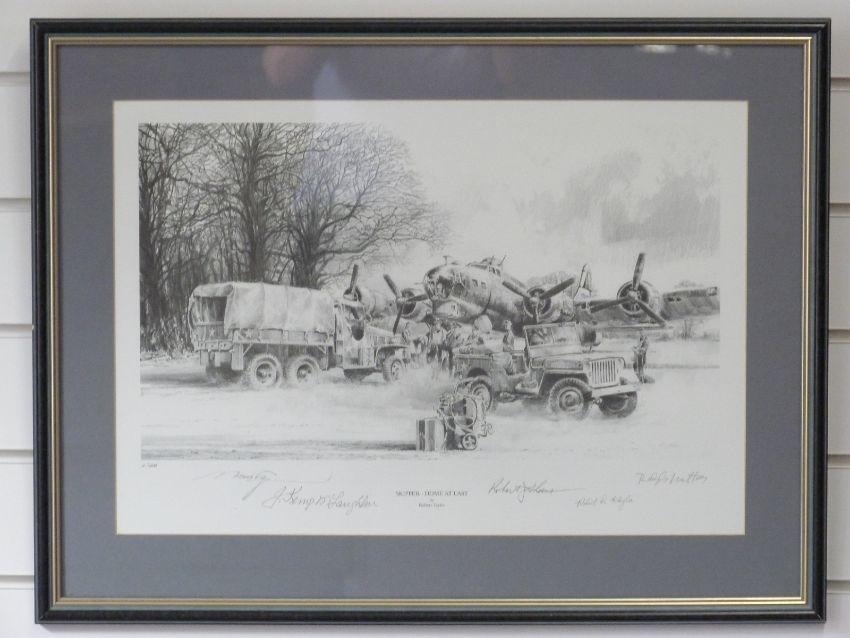 Robert Taylor signed limited edition (4/400) print Skipper Home at Last signed by the artist and Kemp McLaughlin, Robert Shoens, Robert Kleyla and Ralph Nutter together with Eric Bottomley signed print Meteors over the Severn