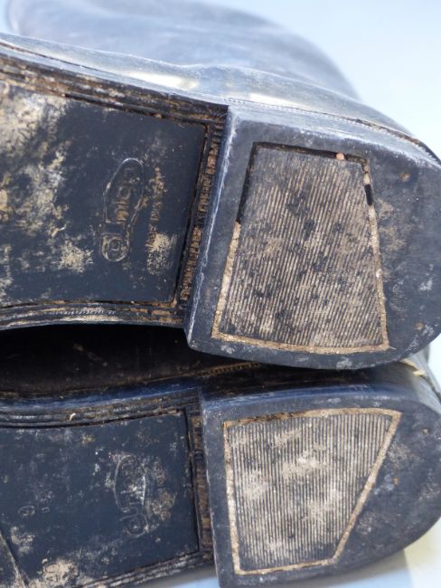 Vintage leather suitcase, riding boots, hat and two crops