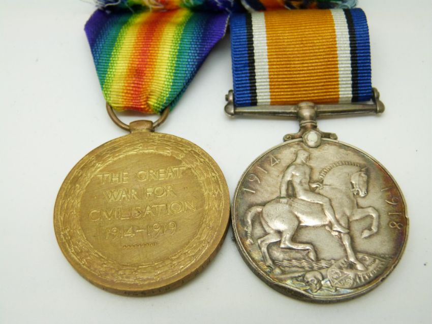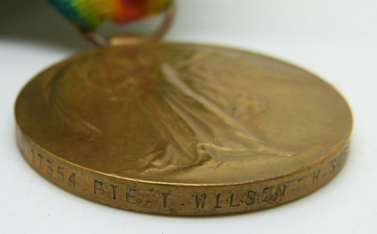 British Army WWI medals comprising the War medal and Victory Medal named to 17354 Pte T Wilson Royal Sussex Regiment