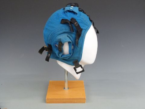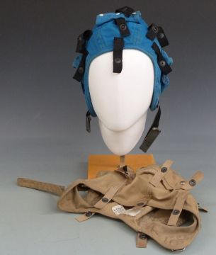 Two crewman's flight deck helmets