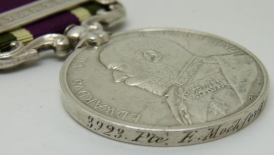 British Army Tibet Medal with clasp for Gyantse, named to 3923 Pte F Mockford, 1st Battallion Royal Fusiliers