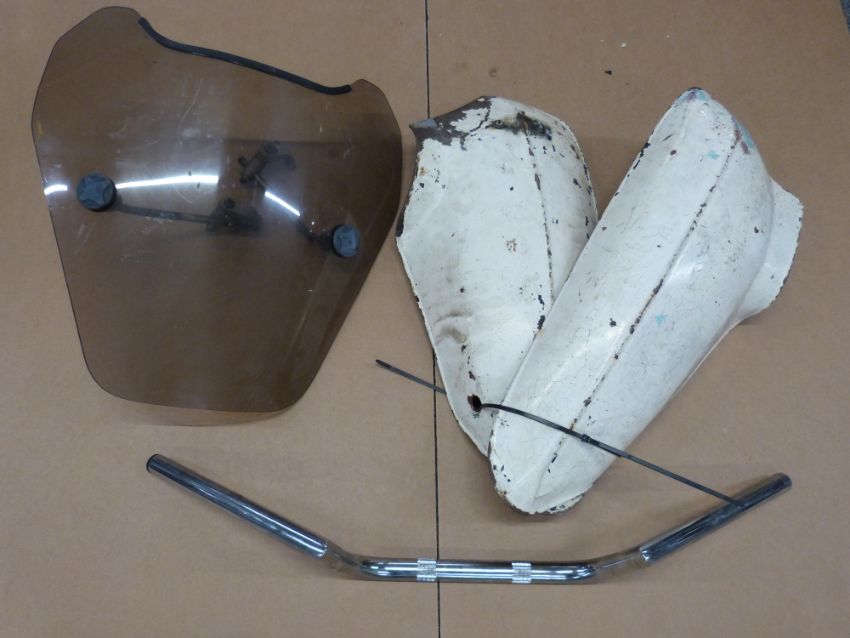 Ace motorbike handlebars, windscreen and a pair of leg shields