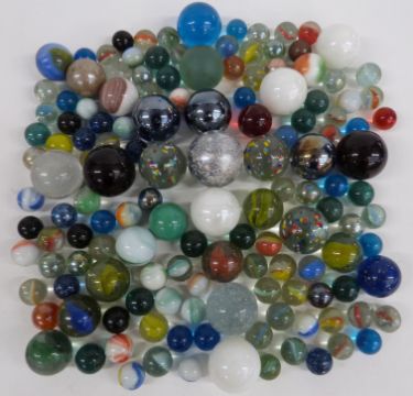 Over 750 glass marbles all with coloured or multi-coloured centres