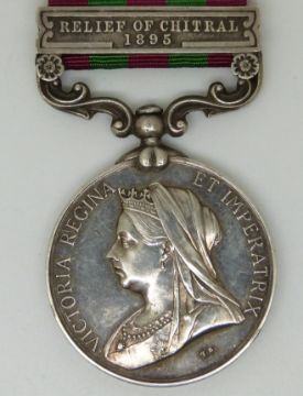 British Army India Medal (1896) with clasp for Relief of Chitral, 1895, named to 4111 Pte G Wright, Bedford Regiment