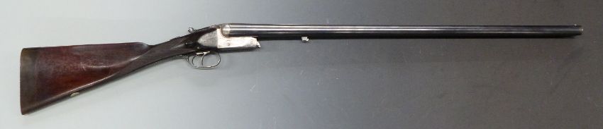 George Gibbs of Bristol 12 bore side by side ejector shotgun with named and engraved locks, engraved underside, trigger guard, top plate and thumb lever, chequered grip, vacant cartouche to the underside of the stock, double trigger and 28 inch barrels, choked ½ and improved cylinder and engraved 'George Gibbs Ltd 39 Corn Street Britol', overall length 113.5cm, length of pull 37cm, serial number 6599 PLEASE NOTE THAT A VALID RELEVANT FIREARMS/SHOTGUN CERTIFICATE IS REQUIRED TO HANDLE/PURCHASE THIS ITEM.