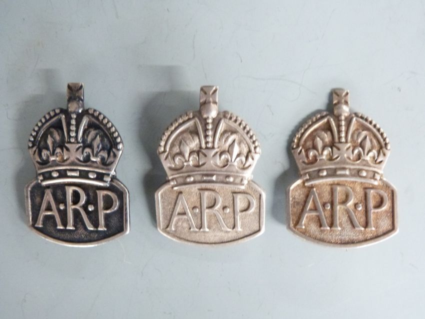 Three silver war wound badges, three silver ARP badges, miniature medals etc