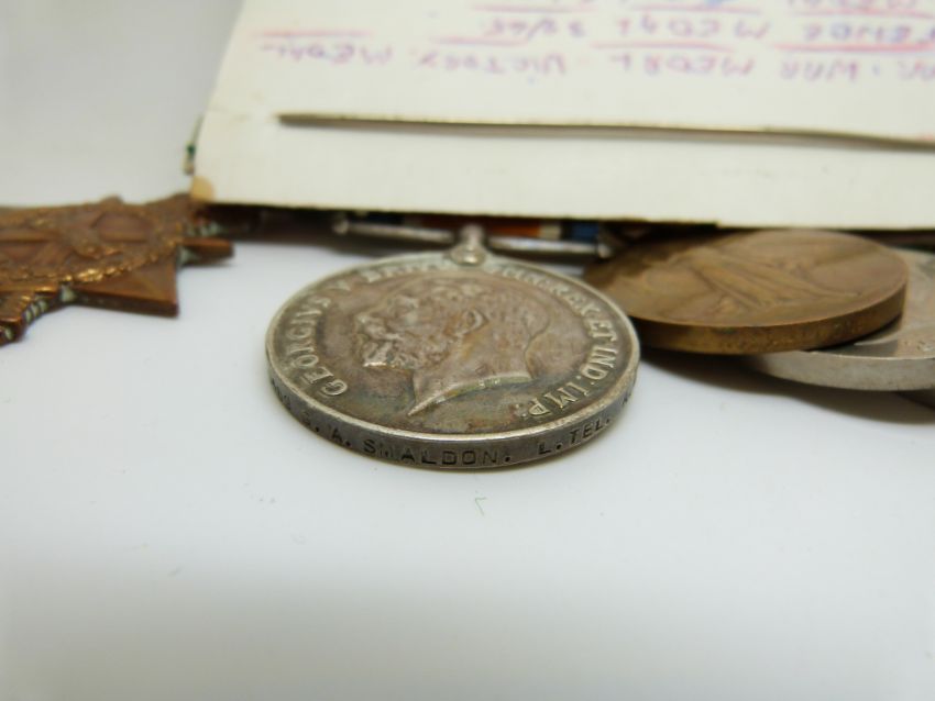 Royal Navy medal group comprising WWI 1914/1915 Star, War Medal and Victory Medal named to 219489 G A Smaldon. PO, RN, together with his WWII Defence Medal and War Medal and Long Service and Good Conduct Medal