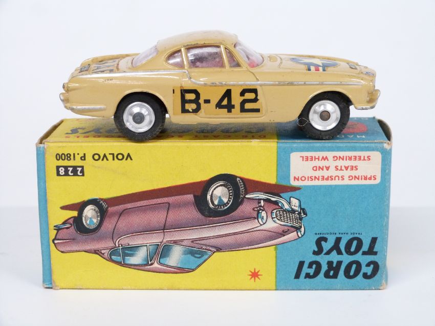 Corgi Toys diecast model Volvo P.1800 with beige body, red interior and USAF military decals, in original box.