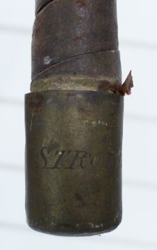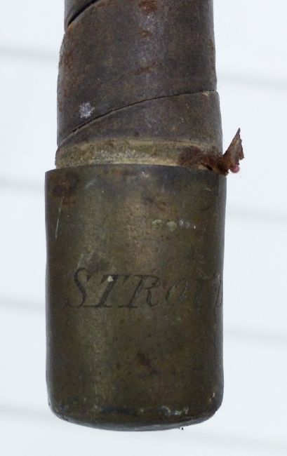 Holly carriage whip with brass knop engraved 'Stroud Mail', probably from the Stroud mail coach