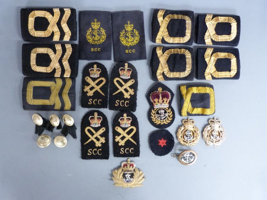 A small collection of Sea Cadet Corps badges, epaulettes and buttons