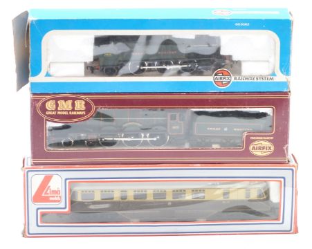 Three 00 gauge GWR model railway locomotives comprising GMR Castle class, Airfix Prairie tank and Lima GWR railcar, all in original boxes