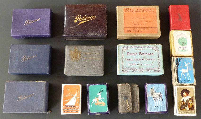 Twenty two packs of patience playing cards, some double packs including Orient Line shipping interest, Wills etc