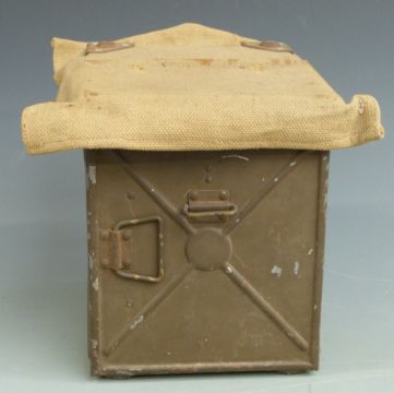 British Army daylight signalling lamp in metal case with a MkII spare parts tin and contents, together with another similar example