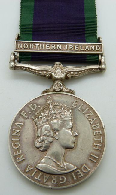 British Army General Service Medal with clasp for Northern Ireland named to 24213083 Pte I T Rawlyk, Duke of Edinburgh's Royal Regiment