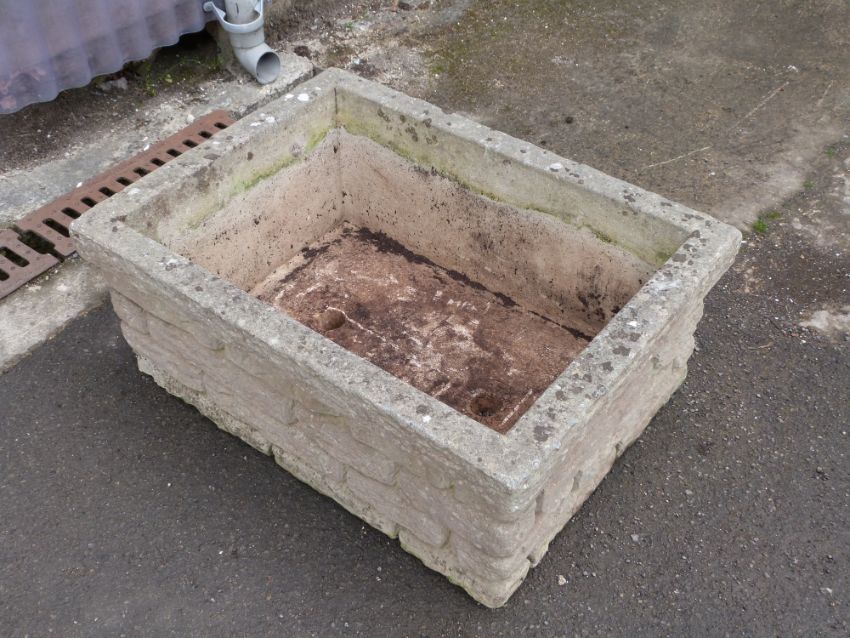 Pair of reconstituted stone garden planters. W71 x D53 x H29cm